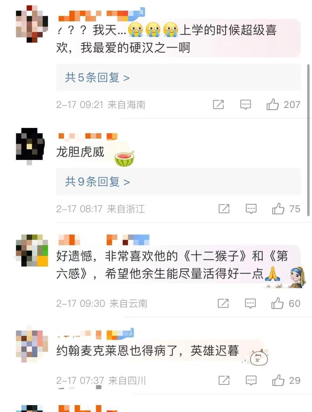2022月,布鲁斯因确诊失语症退出演艺圈,2023月,布鲁斯·威利斯的家人再度发文称他病情恶化,确诊额颞叶痴呆症,目前无法治愈。对此,不少网友感叹:硬汉也会老去...